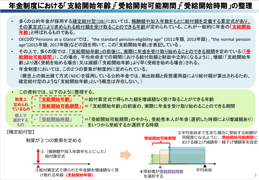 また、一律の「支給開始年齢」よりも、自分で選択できる「受給開始時期」に着目し、個人が就労期間などに合わせて受給を始める時期を柔軟に選択できるようになっています。
