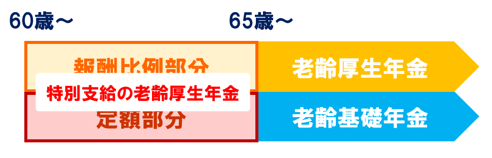 このとき、60歳から64歳までの老齢年金については「特別支給の老齢厚生年金」として、従来の給付を維持する仕組みとしました。