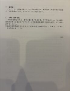通知書はこちらの圧着ハガキです。